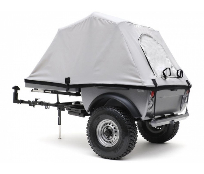 This is a realistic scale looking 1/10 pop-up camper tent trailer kit. Comes with tow hitch to attach onto any chassis frame easily. The nylon pop-up tent can be easily set up by flipping open the top bed compartment. Two openings on the front and back can be rolled up on the tent.
