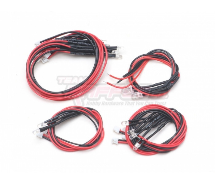 This is a set of 14 bright LED lights that can take up to 12V. There are enough LED lights for basic setup for one car.
