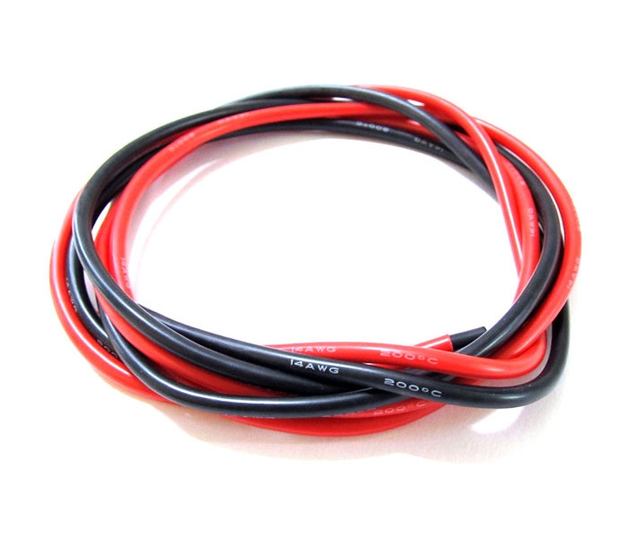 Strand wire with red and black silicone insulation 14AWG size wire. Ideal for making brushless motor, ESC and LiPo battery leads.