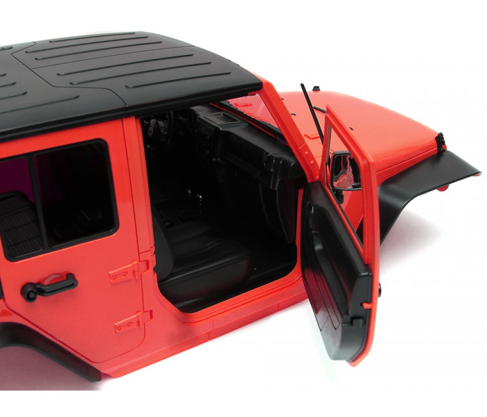 This new Rubicon 5-door version is a must have for scale freaks! Working front and rear doors. Made of ABS hard plastic. Comes with color molded plastics in red or yellow. Has an interior included.