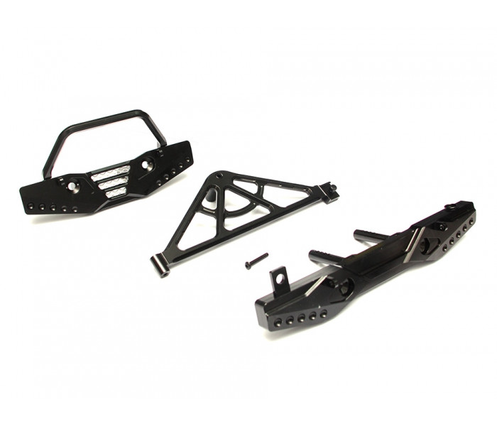 Aluminum Front & Rear Bumper Set w/ Realistic Spare Tire Carrier - 1 Set Black