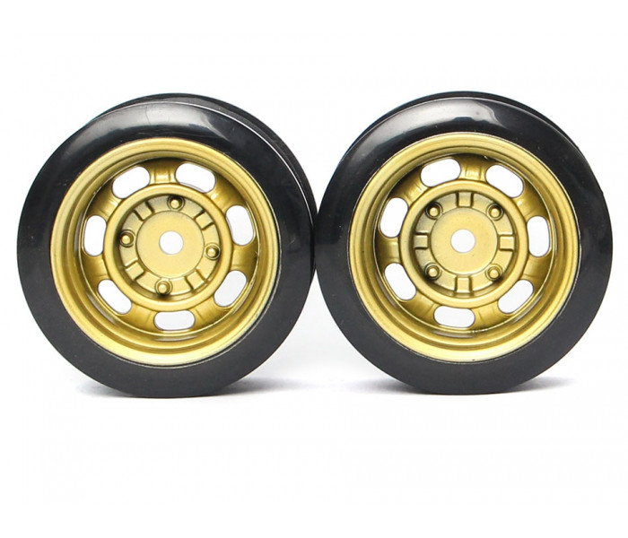 Classic Fake Tire Wall Wheel Set (2Pcs) Gold For 1/10 RC Car (6mm Offset)