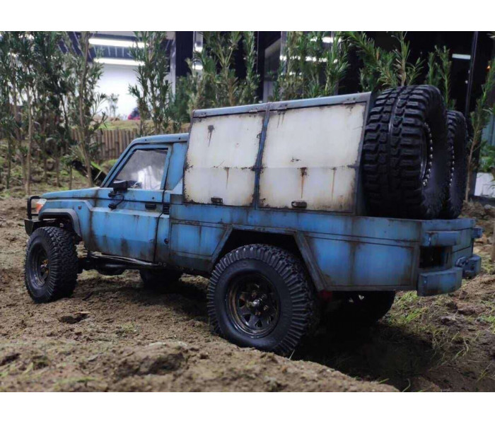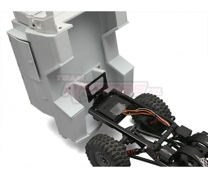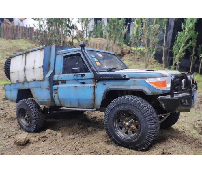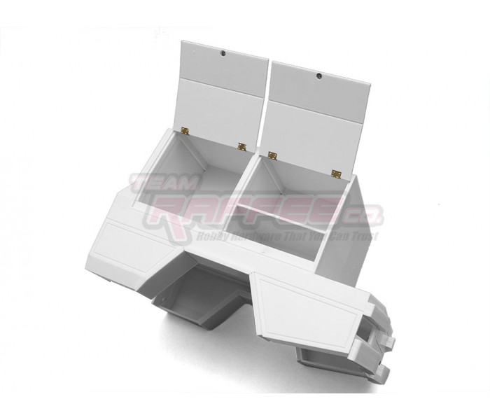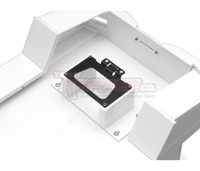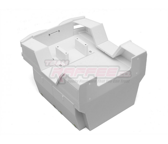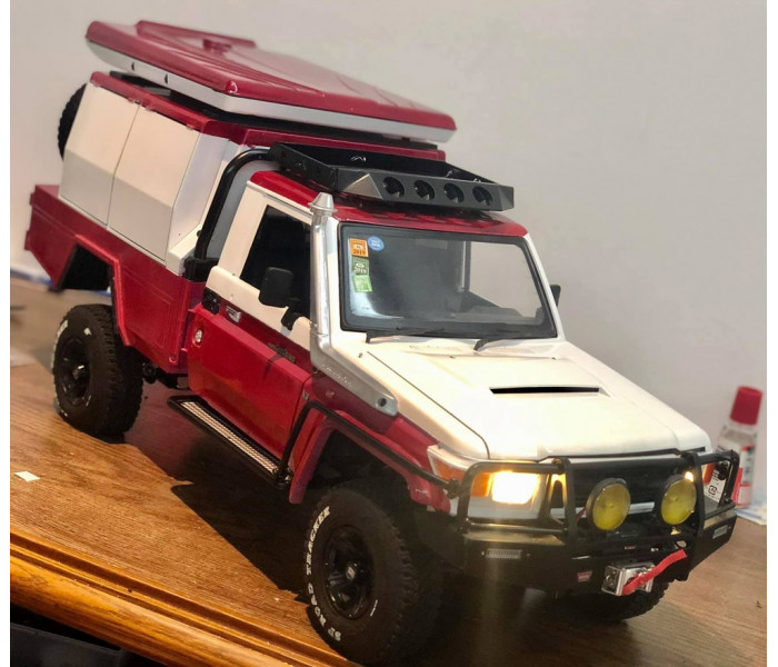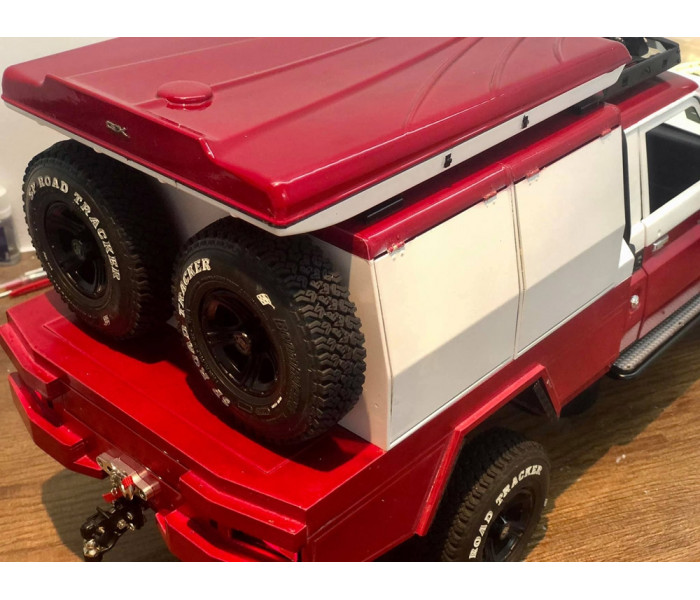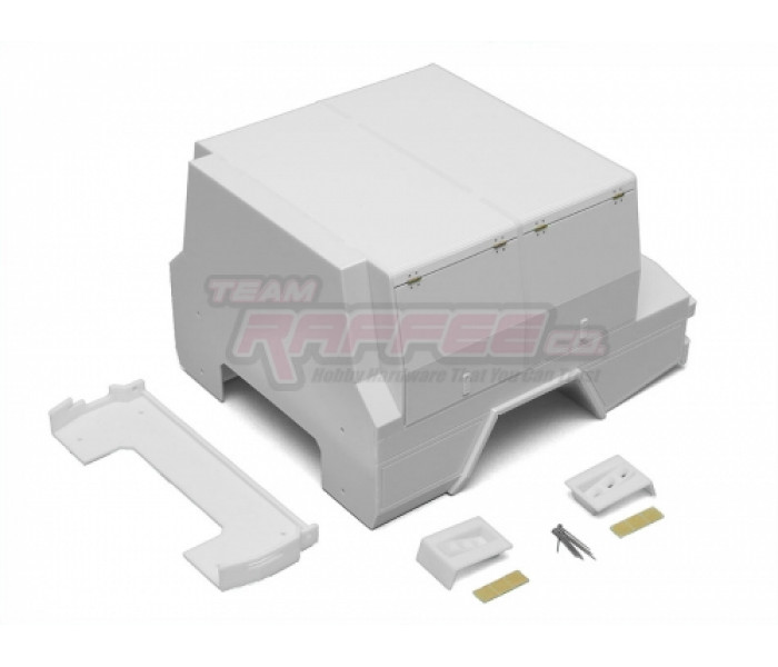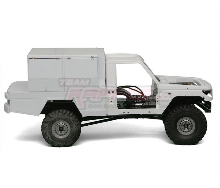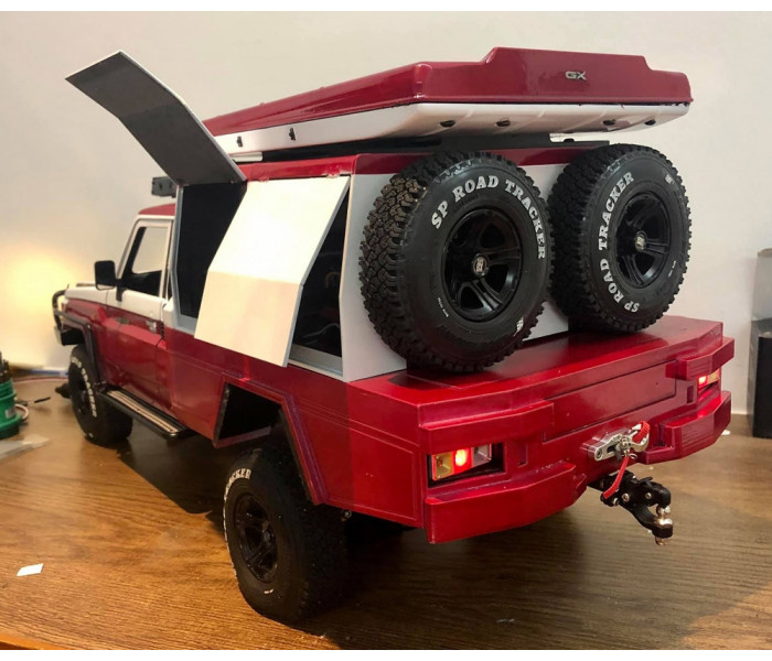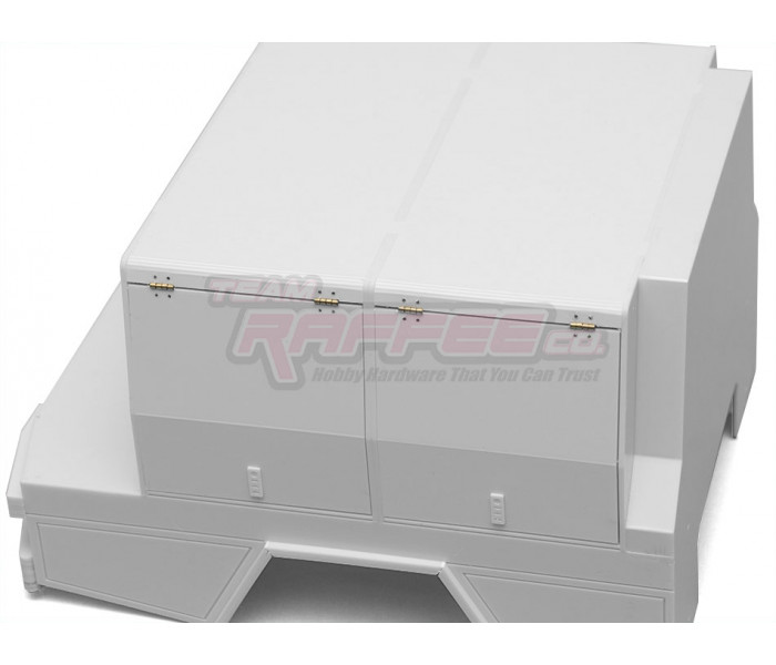 This is a Team Raffee Co. Flat Bed Tray with Two Half Canopies for the Boom Racing BRX01 used with the Killerbody Toyota Land Cruiser LC70 body.