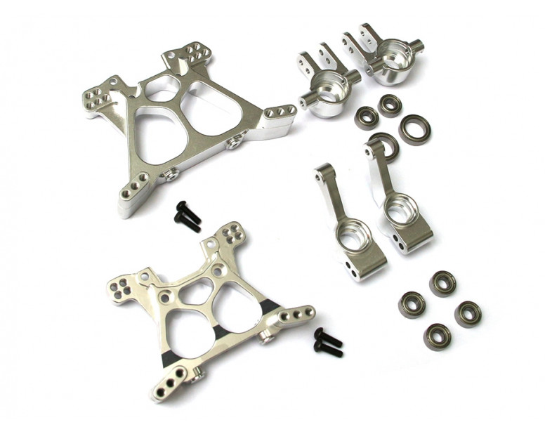 Front Knuckle,C-Hub Steering and Steering Link Combo Set - 3 Items Silver