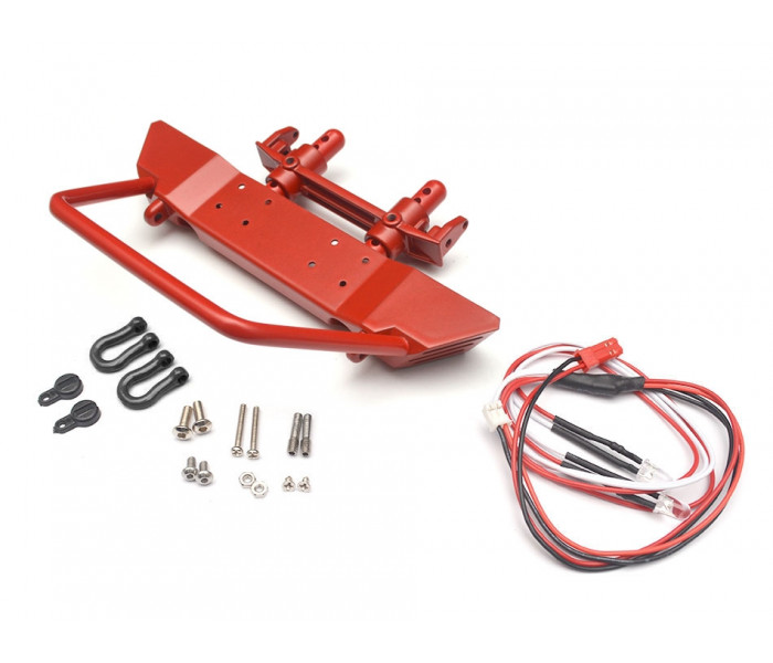 Realistic Steel Front Bumper w/ LED & Towing Hooks 1 Set Red