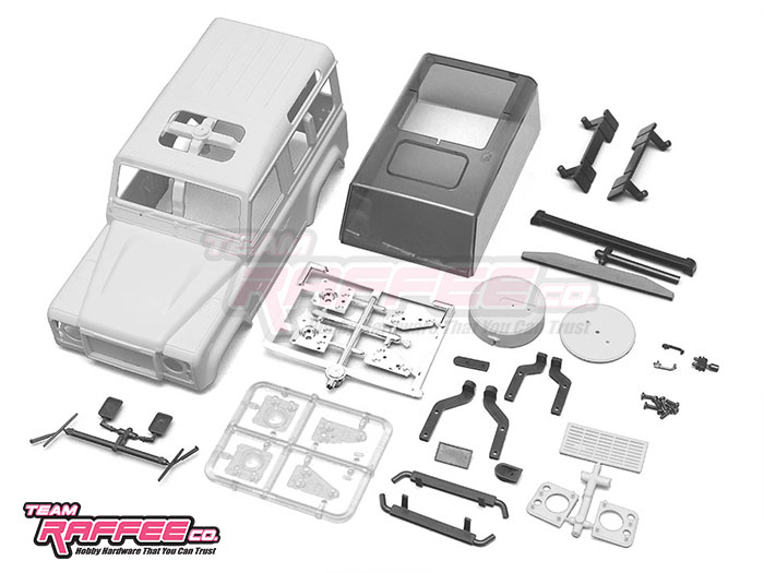 The Defender D90 body shown here is mounted on a Mini-Z 4x4 Hilux 4Runner chassis. It is quite easy to mount with no major modifications needed. All you need to do is to install the front and rear bumpers.